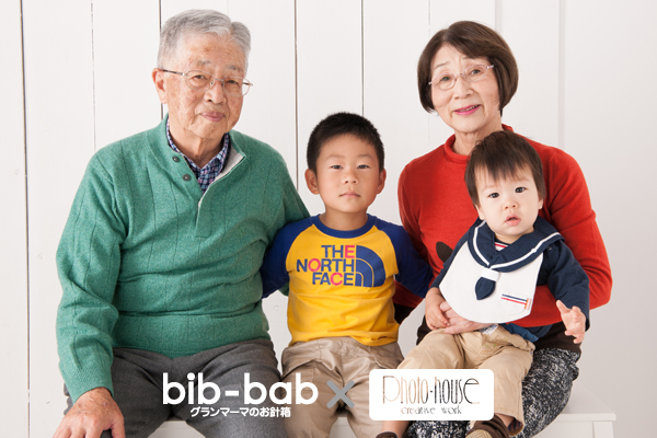 フォトハウスとしては初めてのコラボイベントでしたが、「子供が大好き」という想いはbib-babさんと全く同じでしたので、終始楽しく撮影が出来ました。 普段では主役になる機会が減ってきたおじい様・おばあ様も、この日はお孫さんのパワーも手伝ってか、笑顔が溢れていたことがとても印象的でしたね。